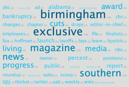 Nearly two dozen of our stories posted on Media of Birmingham regurgitated the alarming trends: cuts, layoffs, freezes, buyouts, slumps and terminations. Three magazines — Lipstick, Skirt and Southern Accents — folded in the past 12 months.