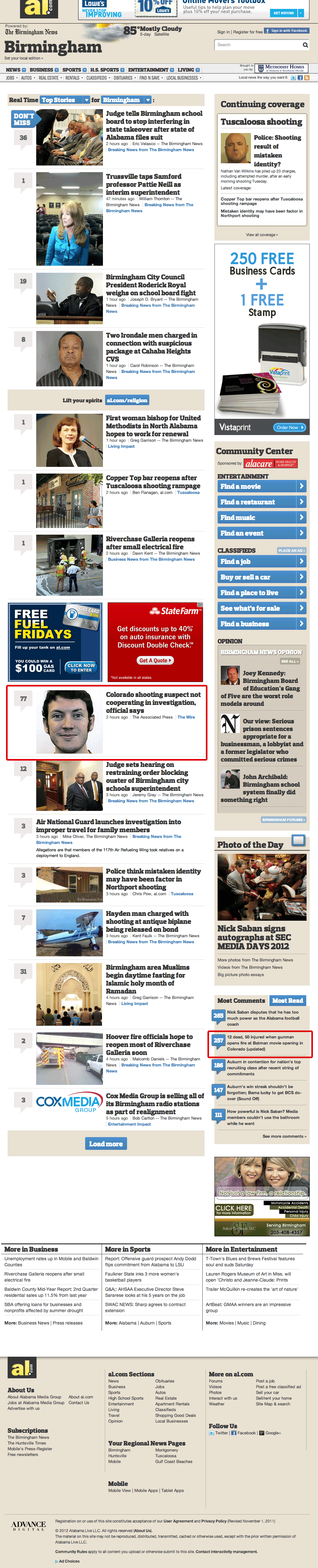 Before that explosive announcement, Advance’s online portal al.com joined nola.com and mlive.com in a drastic and comprehensive site redesign. Reaction by readers nationwide — as Advance switched all its sites over to the 2012 look — was overwhelmingly negative.